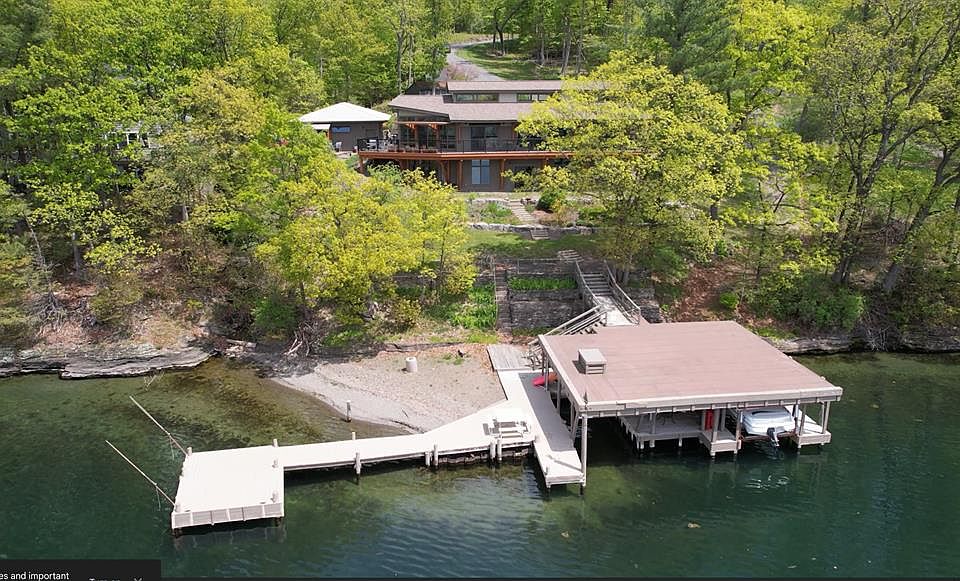 One of a kind Seneca Lake Location, Home and Lakefront. Just 3.5 miles North of Watkins Glen in the Town of Hector this custom built post & beam contemporary home has a 3 car garage, 6.25 acres and 168' of lakefront with a 2 slip boathouse, level beach and dock. Natural sunlight abounds throughout this 2/3 bedroom, 2.5 bath home where lake views rule the day. Stunning cherry and maple cabinets throughout the kitchen. Granite counters, island, double sinks, tons of storage. Dining room, living room and master bedroom suite all have walkout Anderson sliders to the covered deck. Finished LL has Great room, bedroom, bath and office that walks out to patio gardens. Radiant heat/AC throughout. Wonderful gardens surround this home. Private road. Lake life in so many ways come enjoy it!