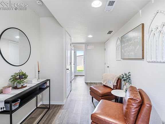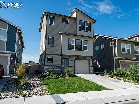 This charming move in ready like-new 3 bedroom home will captivate you as soon as you walk in! A spacious foyer greets you at the entrance of this floor plan on the lower level leading to the spacious laundry room with ample storage. On the main level you'll find a functionally open kitchen which leads right into the living room to provide the perfect space for entertaining guests. On the upper level a spacious master bedroom awaits. Also on this level there are two more bedrooms to greet you followed by spacious full sized bathroom. This home is one of the larger lots in the neighborhood and built in 2020. You'll find a well maintained fenced backyard and perfect view to the Spanish Peaks on a clear day. With easy access to Fort Carson and Peterson SFB and a short drive to First and Main for shopping connivence. Only a 10 minute drive to downtown! With this home you have access to a community recreation center to accommodate your fitness needs. Quick close available!