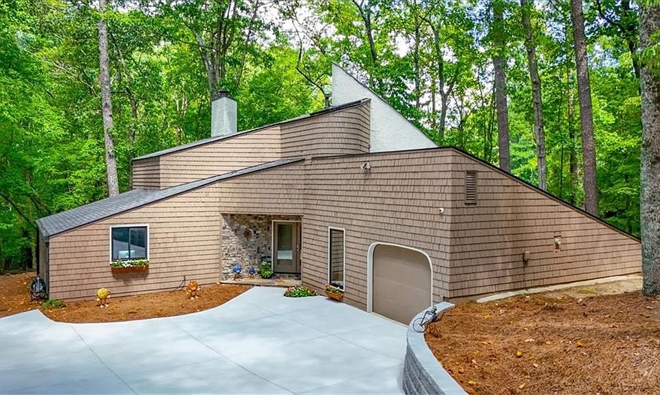 You MUST see this SERENE, PRIVATE, ONE OF A KIND PROPERTY WITH LAKE VIEWS in the sought-after lake community of Loch Highland. The Frank Lloyd Wright INSPIRED home on two levels of multiple breathtaking views will beckon you to linger longer than you anticipated! So, open up your schedule and book a lengthy viewing. Don't be rushed! You'll know the minute your wheels hit the driveway that this is a special place in one of the community's most intimate and established areas. The lake is owned by seven neighbors who share in the maintenance of a rain-fed waterway where each property's boundary lines meet. This home has been improved over the years with details such as Andersen composite sliding and rollout windows, Exarc circular and rectangular skylights, high end carpeting, Italian porcelain and glass tiles, high level stone counters, Hansgrohe fixtures, recessed lighting, a new stone fireplace and many other designer touches. The open layout is clearly fung shui with views of the water from all but two rooms. Three secondary bedrooms are located on the main level, granting the adults of the house the privacy they deserve, to include a large bedroom and bath. The bonus area upstairs off the primary suite would be perfect for a yoga room, art studio, dressing room or nursery. Back to the main level is a family room with views of the circular kitchen and a wall of Therma-Tru doors overlooking the water. The former 2nd car garage was turned into a bonus room/office. Sitting on a level and gently sloping rear lot, expect to spend many hours outdoors in the gazebo or on the private dock nestled in the trees. New driveway and new retaining wall! Lassiter High, Mabry Middle and Garrison Mill Elementary are some of the best schools around. Amenities in this community include 31+ acres of lake, swim, tennis, playground, fishing dock and multiple pools. Take a peek at the extra document included that spells out all of the attention to details and upgrades in this home. This home is only meant for that one special buyer. Are you the one?