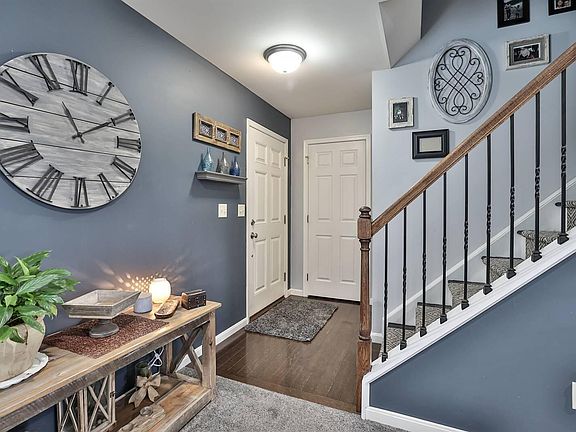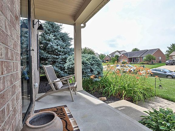 Well loved full brick wrap move in ready 2-story in Hunters Ridge. Energy efficient Arlinghaus built home w/ 3 finished levels. Mature landscaping, fenced level yard, & inviting covered front porch. Hardwood entry & powder room adjoin the spacious great room w/ newer carpet & recessed lighting. Fully equipped eat in kitchen boasts SS appliances, attractive butcher block island, faux decorative backsplash, & pantry. Dining room has walkout to the rear deck w/ gazebo & stairs to the rear yard. Popular 1st level laundry w/ decorative barn door. Primary suite boasts walk in closet, overhead fan, & adjoining bath. 2 additional bedrooms w/ ceiling fans plus 2nd full bath upstairs. 6 panel doors, updated lighting, & tasteful décor throughout. Fully finished lower level features walkout, recessed lighting, 3rd full bath, & large egressed window. Storage room w/ utility sink also in basement. Enjoy the expanded patio w/ privacy wall under deck & firepit. Community amenities include walking trail, pool, & clubhouse. 2 car attached garage w/ opener. 1 year Cinch warranty. Lower level currently being used as 4th bedroom. Flexible floorplan.