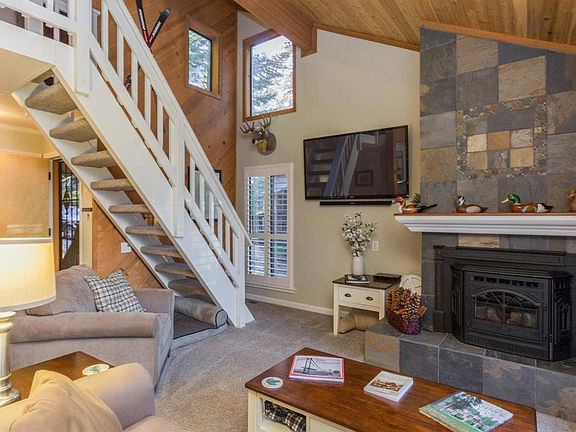 This lovely 2 bedroom 2 bathroom Bretz Mill condo shows like a model home! Upon entering the condo, you will notice the kitchen has beautiful Thomasville cabinetry, new granite counters, and new appliances. The slate mosaic tile fireplace with pellet insert stove showcases the living area. One bedroom and one bathroom are located on the main level, and a second bedroom and bath are located upstairs. Both bathrooms have been upgraded and look stunning. This condo unit has been remodeled from top to bottom including: all new wiring, circuit panel & electrical fixtures, new plumbing, new forced air propane furnace, crown molding, paint and carpet, shutters on all windows, cedar lined closet, and seamless snow/rain gutters over the rear balcony. Superbly decorated, with the right offer, this unit can be sold furnished! Make your appointment today to view one of the nicest condo units in all of Shaver Lake. Prepared to be impressed!