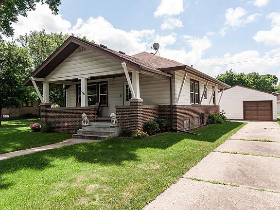 Greeted by a large east facing front porch, you will easily envision yourself enjoying a cup of coffee watching the morning sunrise or unwinding in the evening. Inside you will marvel at the traditional character elements such as large built-ins, original woodwork, the wall-length window bench seat that also doubles as extra storage space, and beautiful oak hardwood floors. Updated lighting in each bedroom and a ceiling fan to the living room have been added. The 2 car garage has access from both the road and the alleyway and along with the shed, there is plenty of room for storage!