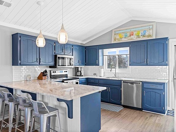 This Is The One!!!! Renovated and Updated to be Practically Brand New Inside and Outside and the home is also being Sold Fully Furnished!!!!! This home is the perfect beach house for any occasion and situation!! It offers 4 great sized bedrooms and 2 full bathrooms!! Brand New exterior siding and the fully screened in porch with new ''trex decking'' really gives this home an amazing curb appeal!! You will fall in love when you walk inside and see the tongue and groove vaulted ceilings from the front back. As you enter, the living room overlooks the dining and kitchen and all share the gorgeous fireplace in the heart of the home. The kitchen's gorgeous white counter tops and backsplash accentuate the cabinets and make for a wonderful and inviting gathering space. Everything is very spacious and the home is set up for entertaining upstairs or downstairs where the carport has been finished off with privacy louvers and the epoxied floor and hardscaped patio. This home has not been rented so it feels new and fresh but please note that this home could also make for an ideal vacation rental home and the direct beach access is located right at the end of the street. This home is sold furnished as you see it with everything turn key and ready to go for you. It doesn't get much better than this, so bring your beach toys and start living the good life here at Sunset Beach!!!