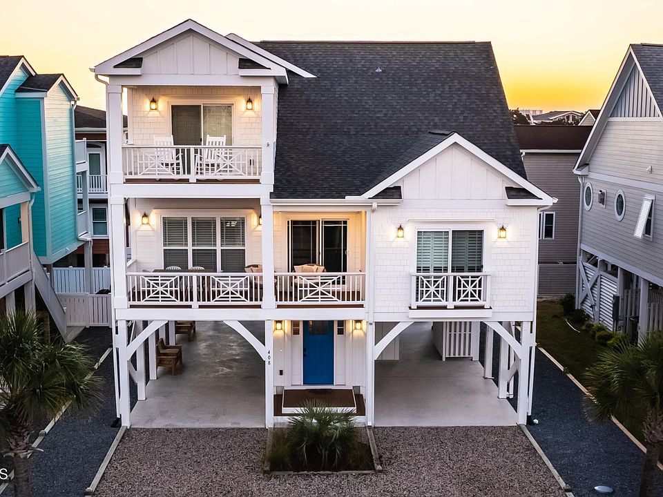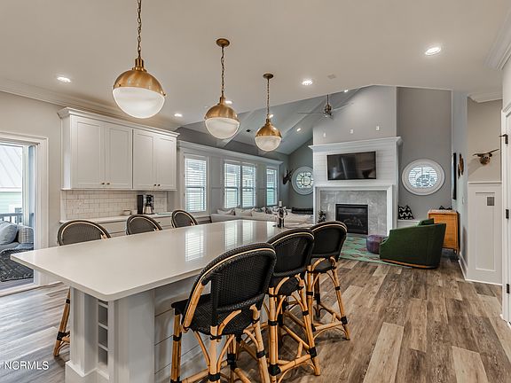 Gorgeous, furnished, 4 bedroom, 2.5 bath home located on the much sought after west end of Sunset Beach Island. Enter into the open floor plan with vaulted ceilings and doors leading to a screened porch. The living room features a fireplace adding ambience to the room. The kitchen is a chef's dream. Stainless steel appliances that include double wall ovens, gas stove top, vent hood, apron sink, island with plenty of seating and plenty of cabinets and countertops. Just off the kitchen is a powder room and closet with washer and dryer. One bedroom on this level has a coffered ceiling and plenty of windows to let the light in. The primary bedroom has a trey ceiling and walk-in closet. The en-suite has a walk-in shower and double sink vanity. Upstairs you will find a bedroom with bunk beds and another bedroom that has a door leading out to the upper deck. The shared bath has double sink vanity and walk-in shower. Separating these two bedrooms is a seating area that overlooks the living room and has a beverage refrigerator. On the lower level you will find an outdoor shower and large storage area. The elevator goes to all floors. The owners have also installed Xeriscaping for easy maintenance of your yard. If you are looking for your very own home, or a beautiful home for income rental, this is the home for you!