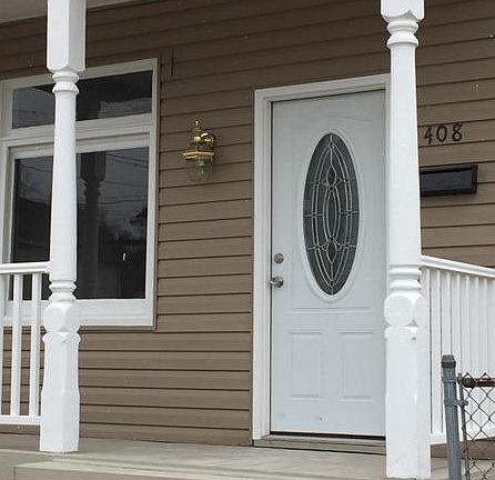 Home has been beautifully updated* New paint thru-out* New wood laminate flooring on first floor* New carpeting on second floor and stairwell*New remodel with stairwell allows great and open view on the 1st floor*New exit doors* new light fixtures* New updated bath with sink, tub and commode*updates include 8 new windows* All new electric outlets and new panel box* *Newer cabinets in Kitchen*New stainless fridge and stove*House - new siding, gutters, downspouts, soffit and facia* Front porch all new with new steps and no maintenance railing and stair rail* full insulation installed on home exterior under the all new siding* 2 on street parking available as well as the 1 off street in rear* fenced lot*