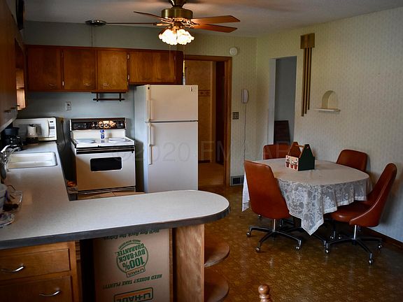 Wonderful one owner home. This great starter home features a large eat in kitchen, 2 living rooms, 2 bedrooms and full bath on a corner lot in great small town. Furnace was recently replaced and Central air!! Hardwood floors throughout under the carpet.