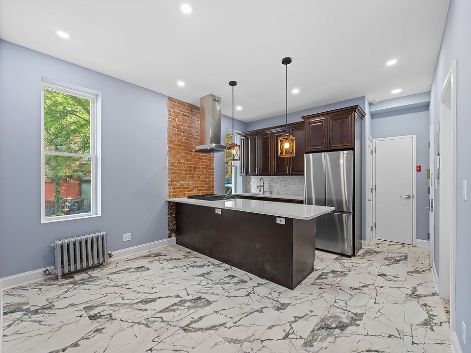 The apartment was gut renovated with no stone left unturned. The kitchen has beautiful custom cabinetry, with brand new appliances, and beautiful stone counter top for a breakfast bar. The marble tile flooring and brick exposure adds a level of elegance to the common space for entertaining with guest hosting & every day use. The layout offers a bright and spacious living area, three comfortable bedrooms each with closets, and tasteful updates throughoutmaking it the perfect place to call home.