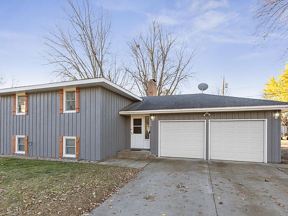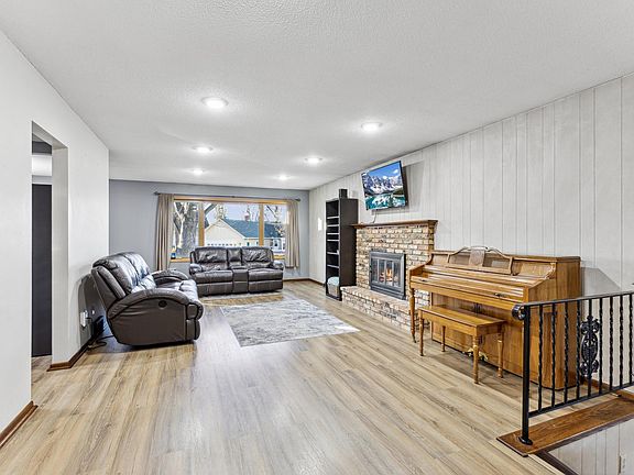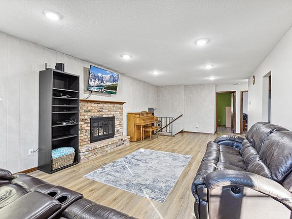 Welcome to this inviting 3 bedroom, 2 bath home featuring a spacious entry foyer with a large walk-in closet. The upper level showcases new flooring, a cozy living room w/a fireplace, and 3 season porch. Downstairs, enjoy a family room w/2nd fireplace & bar area perfect for entertaining, plus a large laundry room w/potential for a 4th bedroom. The insulated, heated 2 car garage includes a floor drain & waterline w/additional carport & large driveway for parking. Ideally located close to parks, schools, the lake and shopping. This home offers comfort, convenience and room to grow!