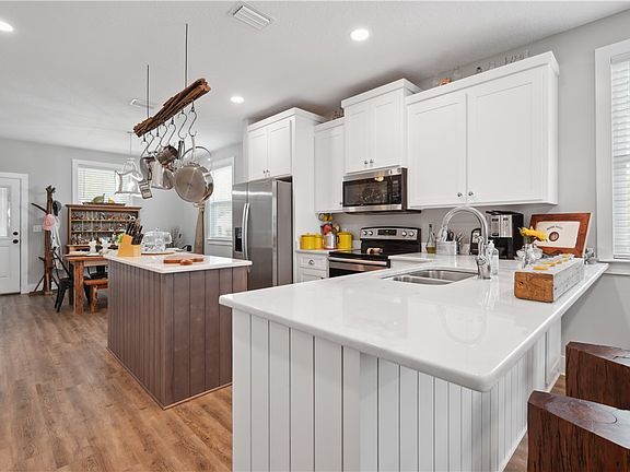 Quality abounds in this downtown Darien cottage! Just blocks to restaurants and the downtown waterfront, this home exudes charm! High ceilings and lots of natural light make this open concept home the perfect coastal retreat. The family rooms blends perfectly into the beautiful kitchen. The kitchen offers granite countertops, a large island, custom shaker cabinetry, large pantry and a welcoming dining space. The dining opens onto the back covered porch. The primary suite is spacious and offers a walk in closet, bathroom with tiled shower, double vanity. The guest rooms share a jack and jill bathroom that has a beautifully tiled tub/shower. There is parking in the front of the home and a driveway in the back off of the alley way. This coastal beauty is one for the short list!