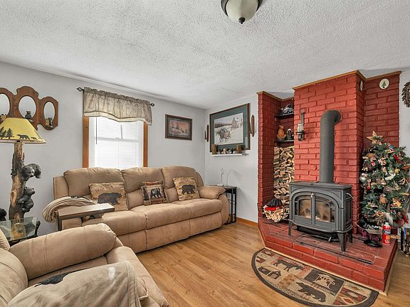 Generous deckFirepit areaEnclosed three-season porchRustic wood accentsCozy living spacesWell-appointed kitchen