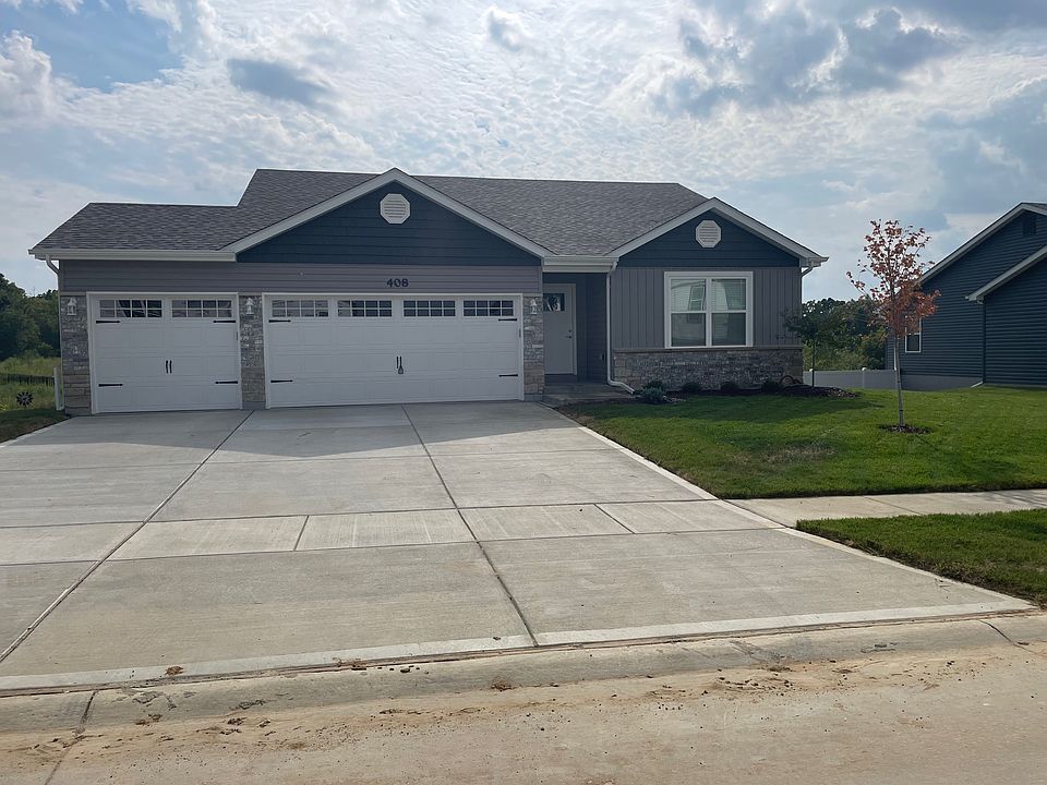 BRAND NEW home with every option you could imagine! They include vaulted ceilings, rounded "bullnose" corners, granite or quartz countertops, stainless steel appliances, 42" cabinets with "cushion close", custom neutral-colored paint job throughout, LVT flooring throughout most of the home, framed windows, taller baseboards, adult-sized cabinets in bathrooms with marble countertops, walk-in closets, upgraded carriage garage doors with openers, full bath rough-in, panel doors, and upgraded water/light fixtures throughout the house! MAIN FLOOR laundry!
