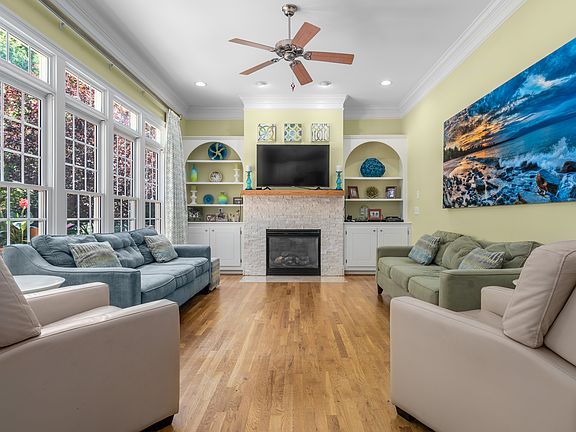 Wow! You can't help but be amazed at all the upgrades in this 4-bedroom, 3.5-bath home in West Cary. Gourmet Chef's Kitchen with QUARTZ counters, custom window treatments, extensive triple crown molding, stone fireplace w/ custom mantle, custom front doors, 10' ceilings downstairs & 9' ceilings upstairs! Enjoy the sun on your HUGE party deck in the backyard, and your WRAP AROUND PORCH lets you enjoy the shade! Comm pool + tennis, active social committee, walk to library, park, elem school, and greenway!