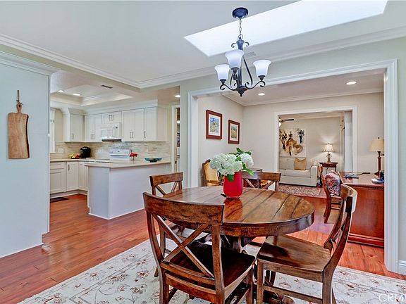 Exquisitely remodeled "Valencia" co-op situated on a serene bluff-top cul-de-sac conveniently loated between Gates 1 & 3. Highly desirable cottage-style home offers the luxury of no neighbors above or below as well as a stair-free layout. As you approach, be greeted by a meticulously maintained, drought-tolerant landscape complemented by community greenbelts & well-kept neighboring gardens. Step onto the sunny front patio and then through double doors to enter the spacious living room adorned with vaulted ceiling and large window providing ample sunlight and picturesque views of the surroundings. Notice the stunning upgrades that enhance every corner of this home including mahogany engineered wood flooring, dual pane windows, plantation shutters, smooth ceilings, upgraded crown and base moldings, central HVAC, upgraded switches/outlets, and a new sub-panel. The fabulous kitchen area has been expanded, featuring quartz countertops with a serving peninsula, a tile backsplash, white shaker cabinets with soft-close drawers/doors and lazy susans and recessed lighting. The kitchen window offers a pleasant view of the front patio. Adjacent to the kitchen, the dining area is illuminated by a generous skylight and leads to the enclosed atrium currently utilized as an office, creating a luminous and functional space thanks to the skylight and recessed lighting. Move on to the guest bedroom/den, which can easily be converted into a private space for guests by adding additional doors. The spa-like bathroom boasts a tiled walk-in shower with a seat and glass enclosure, stackable washer/dryer, skylight, and two granite-topped vanities. The bathroom floor is tiled for effortless maintenance. Master bedroom is of generous size and currently accommodates a king-size bed. Both bedrooms are equipped with ceiling fans for energy-efficient air circulation. This remarkable home is ideally located to enjoy Laguna Woods and its impressive amenities, including Clubhouse 1 with a pool, gym, bocce ball court, and library, as well as Clubhouse 3 renowned for its Performing Arts Center. Laguna Woods Village residents have the privilege of indulging in a 27-hole championship golf course, a 9-hole executive par 3 course, pickleball, tennis courts, lawn bowling, gyms, clubhouses, swimming pools, horse stables, gardening centers, art studio, world-class woodshop, computer workrooms & classes along with 200+ clubs and organizations to stay physically and socially active!