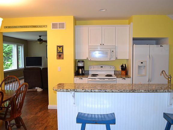 Classic in-town Lake Charlevoix house has been updated to a modern family home, with a large kitchen/dining area. Includes three cozy living areas, two on the main floor - one with a fireplace, one for movies or board games, another upstairs for a retreat with a book. Outdoor patio with lake views. The waterfront is quite private and has a little beach house/cabana for changing or storing water toys. Swim, play, boat all day! Good rental history or a great family home with all the perks and right in town.