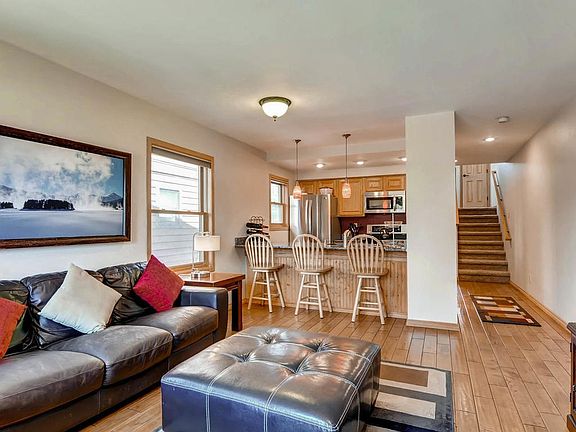 Completely remodeled Frisco townhome with lovely views of Lake Dillon. Exquisite finishes not often found in this price range include gorgeous birch solid hardwood floors, new solid core doors, beautiful granite countertops and high end appliances. Second homeowners will feel at home, and full-time residents will be proud to host friends and family. Extremely well-maintained complex with deeded one-car garage. Easy walking distance to Main Street in Frisco for dinner and shopping.