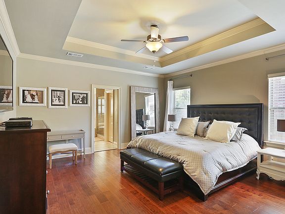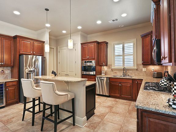 Impeccably well maintained home all on one level, wood flooring, high ceilings, beautiful kitchen with granite counter tops, tiled back splash, stainless appliances, wine cooler, plantation shutters. Den has built in book shelves, fireplace and crown molding. Large master with wood floors, master bath has large shower with bench seat. Large laundry room with utility sink. 4th bedroom and bath off of kitchen if needed for mother in law suite. Large fenced backyard with covered patio.