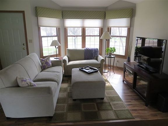 Inviting 3 bedroom 2.5 bath ranch home. Bayed window in living, vaulted ceiling, laminate hardwood flooring and Douglas window treatments. Eat-in kitchen with oak cabinets and quartz counter tops. Sliding door in kitchen leading to the large newly stained deck. Finished basement with family room, 2 bedrooms and bathroom. Newer furnace, water heater and water softner.