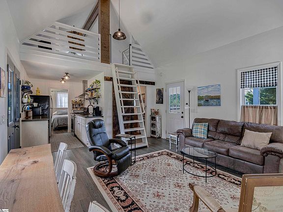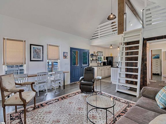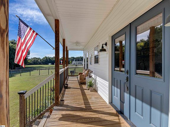 WELCOME TO YOUR TURN KEY EQUESTRIAN PROPERTY WHERE EVERY ASPECT WAS THOUGHTFULLY PLANNED AND EXECUTED. The living space is spectacular, and we will get to it, but the farm itself steals the show. This versatile 7.75 acres has multiple uses: a boarding facility, jumpers, leisure, a convalescing farm for injured horses, natural horsemanship, a lesson program, respite, equine assisted learning, workshops and clinics. 408 Boyd in Laurens, SC includes a 1040 square foot cottage, a second living quarters, a 40x60, 6 STALL BARN, a 100’x200’ LIGHTED arena, A FENCED ROUND PEN, fenced PADDOCKS, WASH STALLS, and so much more. THIS FARM IS READY FOR THE NEXT HORSE ENTHUSIASTS TO INHERIT THE LONG HISTORY OF EXCELLENCE THAT IS RED MOON RANCH. The beautifully crafted cottage may be compact, but it is packed with style and smart space for that heightened quality of life.. Built in 2019, this one bedroom cottage boasts concrete countertops, a large living room, and a spacious loft for extra beds or an art studio. On a farm, it is all about the outdoors and the 48 foot front porch and back porch is where you will want to be for sunrise and for sunset as both offer a spectacular view. Your family, friends, or guests attending equine workshops can stay in your precious one bedroom Zen cabin with heat, a/c, bathroom, sink and small fridge. It is also ready to go on Airbnb. The barn yard was constructed for easy drainage during the rainy season, eliminating muddy areas. It is completely fenced in with 2 gates for easy in and out trailering and safety. It includes a 100’x200’ lighted arena, a 100’x150’ multi use grass arena, a multi use 25’ round pen, and a six stall barn within 40 feet of the main house. The 40x60 barn was purposefully placed with prevailing winds coming through the aisle for comfort during summer months. It also has strong-easy to close barn doors for blocking out the winter winds. The roof is insulated and the 6 stalls each have a window and floors that are leveled with sand underneath the matts. The 9’ stall walls are made with durable custom made shiplap wood. The barn aisle has an electric outlet by each stall, measures 12’, has textured cement to avoid slipping, and allows plenty of space to drive a truck or tractor through for unloading feed or supplies. The tack room is also insulated measuring 12’ X 17’. The hot/cold wash rack is next to the barn, and the barnyard also has 3 outdoor grooming stalls to accommodate multiple horses. These outdoor stalls can also be used as an additional wash rack. The round pen, near the barn, is large enough to use for beginner lessons and horse training. Next to the 12’x20’ cabin is the 100’x150’ grass arena which has multiple uses. There is a labyrinth in the center, a water obstacle, and other elements for equine assisted learning and and playing with horses. These turn out paddocks are easily accessible to the barn to make feeding easy. Two paddocks can be separated or joined by a 6 foot gate. One of them has 4 posts for a mechanical bull which can be easily covered with a roof. The 12x24 run-in shed has matts and is tall to accommodate big horses with only 2 walls to shelter the horses from prevailing winds. The two walls make it more inviting for 3 horses to take shelter. All the fields have electric wire, even the pasture near the road. This keeps horses safe and off the fence. The farm also has a 3 sided run-in shed for minis with their own paddock. Other fields also can be lit with flood lights from the house.In addition to all of the horse amenities, you can park all your toys and tractors in the 16’x20’ carport that is enclosed on three sides. Living quarters, paddocks, and beautiful farmland make this property a horse owner’s dream! It is a must see, so bring your animals, start your business or just unwind in retirement with some horse zen!