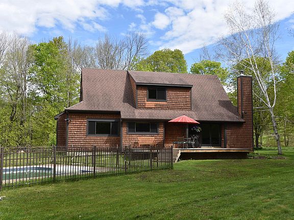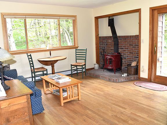 Wonderful property located just one minute away from quaint historic Jericho Center with the Village Green, Library, Community Center, & the Country Store! This attractive contemporary home features a great floor plan with primary bedroom w/ full bath on first floor, 3 additional bedrooms & bath on 2nd floor, additional 1/2 bath on first, mudroom off garage, & centered kitchen that's open to family room & has a pass-through opening to large dining/living rooms. Lots of windows throughout with east, south, & west exposure so the sun pours in & beautiful sunset views can be seen! Other features include hardwood floors, natural trim, & solid wood doors throughout, woodstove & brick hearth in family room, lots of closets, and tons of storage space in finished basement. Additional features include owned solar panels, new large deck, inground pool, lots of yard space with beautiful distant Mountain views, nice plantings, raised beds, lovely mature maple & Oak trees lining the paved driveway, invisible dog fence, storage shed, & more! A minute to Jericho Center but also just minutes to town trails, schools, Richmond & Jericho Markets, and I-89!