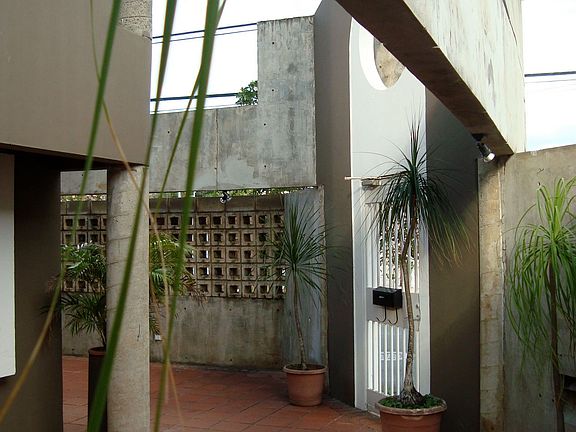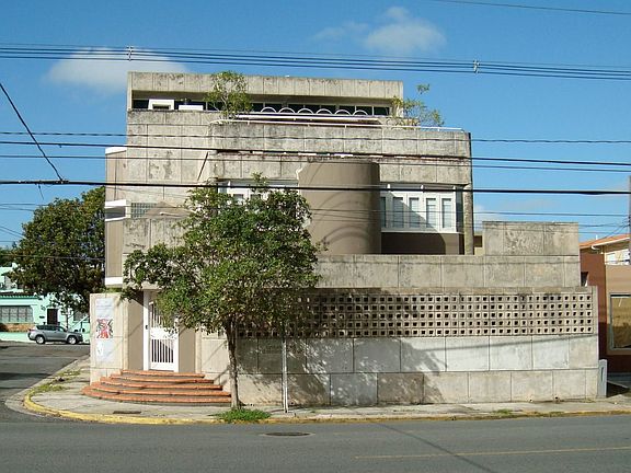 This is our STUDIO/HOUSE in SAN JUAN, PUERTO RICO which we have decided to rent or preferably to sell. The total space area is 4,643 sq.ft. and additional three stairs area, two garages and 1,513 sq.ft. of open terraces and interior patios. It is zoned COMMERCIAL 1. Located at La Milla de Oro Business Area in Hato Rey with great access to the metropolitan area and Las Americas Express Road 52. The Achitecture is a unique example of the Modern Brutalism of 1950th to the early eighties. Done in Raw Concrete and exposed Structural Steel. The interior spaces are very open and the minimum ceiling height is 10 ft. and a maximum of 16 ft. This building is a landmark in the zone and have been well received by the community after overcoming their objections to its design. Time proved differently, becoming an "avant grade" example of the time . Design and built by the me. in 1982 to 1983. I am willing to negotiate an attractive deal to an entrepreneur person with "avant garde" vision. My phone 786-502-0991
