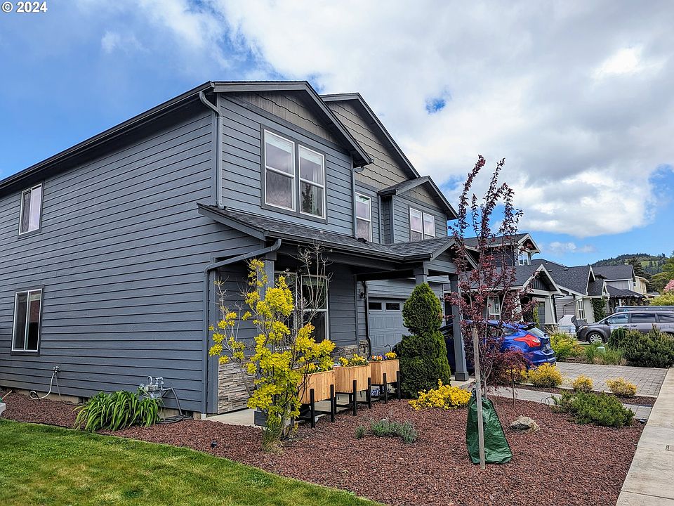 Simple and modern design are found in this meticulously crafted 2018 home. With 3195 sq/ft, a double car garage, and an updated drought-tolerant yard, this property offers both comfort and convenience. The custom covered patio invites relaxation in the backyard, while the four bedrooms upstairs, including a luxurious primary suite, ensure ample space. Spacious hallways complement the large living room, dining room, and office on the main floor. Explore nearby trails, parks, and amenities in the desirable Hood River Heights neighborhood. Your next chapter awaits at 408 Cameo Drive!