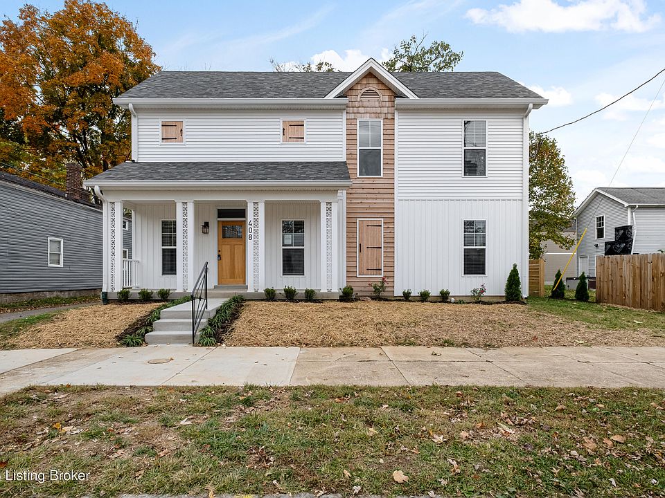 408 Camp St. is a must see!! This charming, newly constructed 2 story cottage has 3 bedrooms and 2 full baths and is located in the heart of Shelby Park. It is walkable to Logan Street Market and lots of other restaurants, bars and shops in the Shelby Park area. It is also situated a short distance from Nulu, Germantown, downtown and Bardstown Rd. The builder has paid attention to detail during construction and the property fits right into its surroundings. Upon entry, you will find an open space that hosts the kitchen, living room and dining area. The first floor has 9-foot ceilings and many windows, so the entire home is modern, bright and airy. The kitchen boasts leathered granite countertops and lots of cabinet space for storage. Along the front countertop, there is a bar for more casual seating and the living and dining room areas are inviting, offering tons of natural light. The flooring throughout the home is luxury vinyl plank in a warm caramel brown color that automatically feels comfy. To finish the first floor, there is one large bedroom and a full bath. The bedroom has plenty of closet space and a ceiling fan to make you or your guests more comfortable. Ascending the stairs you will find two more bedrooms with large closets as well as ceiling fans. The laundry room is also situated on the second floor. The bathrooms are tiled beautifully with neat mirrors and vanities giving them a chic, modern look. 408 Camp St. Is partially fenced in the back yard for privacy as well as rear entry into the home and an off-street parking space. There is plenty of street parking in front of the home for friends and family. The buyer will receive a one-year Builder's Warranty and a two year termite warranty.