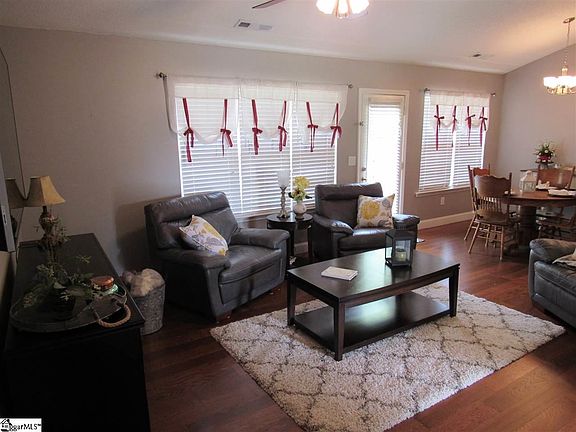 This is a wonderful home for empty nesters or first-time home buyers, located in Sitton Creek offering 3 bedrooms and 2 bathrooms. There are NEW HARDWOODS in the master bedroom, kitchen, dining area, great room, and hallway, plus NEW CARPET in the other two bedrooms and bonus room. The kitchen, dining, and great room were just painted, this home is ready for the next owner! The open floor plan is accentuated by the vaulted ceiling, and the upstairs bonus room could be used as a game room for the family, an exercise area, or another living area. The front yard has matured plantings and the backyard is fenced, offering plenty of privacy. The home is conveniently located between Easley and Powdersville, a short drive to shopping and dining.