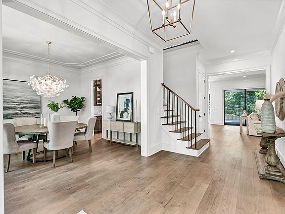 North Hills East Neighborhood.  Gorgeous finishes in this 5 BR 6 BA open floorplan luxury home located in the heart of Raleigh's Midtown and hottest zip code 27609, also known as North Hills East where you never have to leave the neighborhood to get to grocery, restaurants, shopping & entertainment.  The exterior is adorned with lovely casement windows, cedar columns,  metal accent roofing and a custom steel front door. 16' sliders open up to a huge blue stone covered screen porch with plenty of room for dining and sitting areas. This space is easily usable all year long with the included infratech ceiling heaters. In addition, this space overlooks a large, flat, pool ready back yard. The butler's pantry is finished out with smoked mirror in between white oak shelving on one side and glass cabinets on the other with a built-in wine frig.  The kitchen is loaded with gorgeous lighting, a waterfall island and a complete appliance pkg including 42'' paneled built-in frig, double ovens, microwave drawer, & 36'' gas cooktop. There is a mudroom with a powder room, a nook, separate dining room and a guest suite on the 1st floor.  The bonus room on the second floor has a private half bath. The primary suite connects to a large closet which then connects to the laundry room.  Custom trim, custom cabinets by Kith, designer tile, Visual Comfort lighting and luxury flooring brought this awesome floorplan to life.