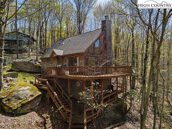 WOW! What an amazing house at an AMAZING PRICE! Seasonal mountain views can been seen from this charming chalet style home. Add your personal touch to this home and with some modern updating it would be an amazing vacation home/rental property! Don't wait to see this home as it won't last long! Beautiful ROCK outcroppings on the property add to the uniqueness this property offers. The main level has HIGH vaulted ceilings with a wall of windows in the family room surrounded by a stone wood burning fireplace. The kitchen overlooks into the main living area and there is a full bath and bedroom. Upstairs is the LOFT BEDROOM SUITE w/ full bath and the lower level features a 2ND FAMILY/TEEN room, full bath and laundry. Beech Mountain Club eligible. Being sold furnished. Home has never been rented.