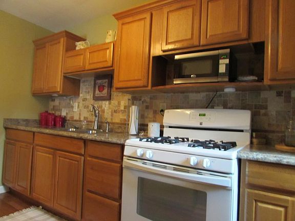 Move in condition with very nice hardwood floors throughout. Large living room open to dining room. Many updates including kitchen, replacement windows new furnace, new water heater. Large finished room in basement has French doors and could be a third bedroom or family room. Enclose porch has vaulted ceiling sky-lite is heated and looks out over the large back yard ideal for gardening. Sq.ft. and dimensions are approximate.