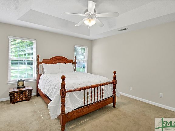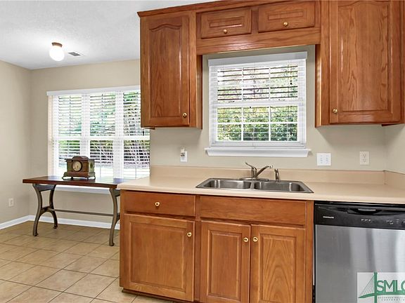 Welcome to 408 Chestnut St, a stunning brick home on a spacious lot, offering over 1500 sq ft of living space in Bloomingdale! This charming residence features a spacious living room boasting cathedral ceilings & abundant natural light. The formal dining room opens to the kitchen, which showcases ample cabinet space, stainless appliances, and a charming breakfast area. The primary suite is a true retreat, with trey ceiling, 2 walk-in closets & an ensuite featuring double vanities and a new walk-in tile shower. Two guest bedrooms & a full guest bath complete the interior features. Outside, the private backyard with a patio overlooks serene wooded views on .39 acres, providing ample space for relaxation & entertaining. Enjoy the convenience of being within walking distance to schools and shopping, and a short drive to Pooler, Savannah, the Hyundai Plant, and Gulfstream. Located in a neighborhood with no HOA and no flood insurance needed!