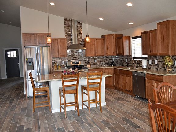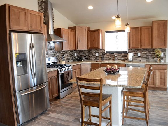 Completed and ready to move into.Wood grain tile flooring in Kitchen,Dining,Living room, laundry & Bathrooms.Upgraded carpet & pad.Hickory Cabinets & Vanities with full extension drawers & doors with soft close.Granite counter tops throughout,stainless steel appliances including refrigerator & designer stainless steel hood.Under mount sinks,tile showers with glass surround.Insulated & Drywalled garage with service door.Front & back yard landscaping,sprinkler system, fenced yard & patio.No HOA