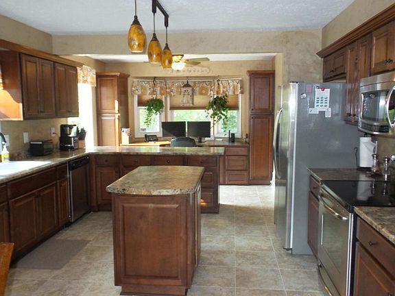 You will love the peace and quiet, and privacy with this property. You can sit on one of the decks, patios, or 3 season room and enjoy. Land and house have been well cared for. This home has been remodeled from top to bottom. Kitchen offers loads of cabinets, island, all appliances, and large dining area. 2 brand new bathrooms with one jetted tub. Main floor family room has wood burning fireplace and gorgeous built ins. Basement is completely finished with familyroom, play room, and 4th nonconforming bedroom. New flooring and paint throughout. Exterior is all maintenance free with vinyl siding, new windows, and new roof. There is a 27x40 barn for horses or anything else. Great spot to build another outbuilding. Swimming pool and swingset stay. Located right outside of town