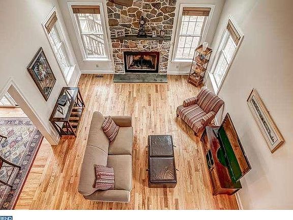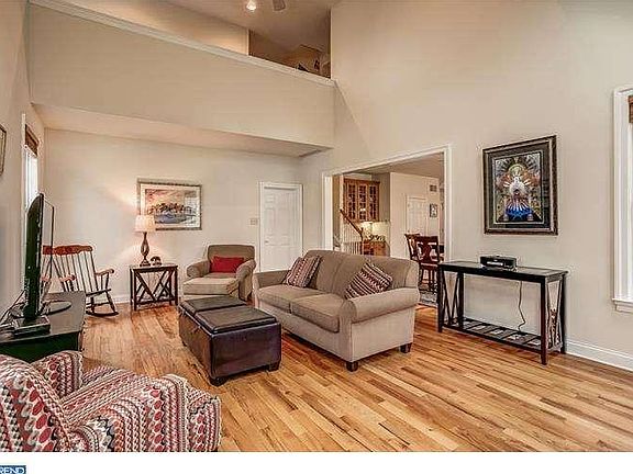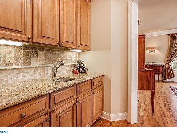 Gorgeous and sunny center hall colonial with superb curb appeal and lovely living spaces. The two-story foyer with cathedral ceilings leads to the welcoming living and dining room. Beautiful gourmet kitchen with an island, eat-in kitchen area with doors to the deck and yard, stainless steel appliances and granite countertop with custom backsplash. Kitchen is adjacent to the dazzling family room that has a gas fireplace, cathedral ceiling and is delightfully illuminated by the skylights and windows. The kitchen is completed with a butler's pantry and desk. Den area that can be used for a library or office, hall bathroom and laundry/mud room complete this level. The whole first floor is enhanced by the hardwood floors, 9' high ceilings, crown moldings and millwork. The second floor has a generous size master bedroom with sitting area and bathroom with two sinks, separate shower, Jacuzzi and toilet area. Three additional bedrooms and two more bathrooms complete this level. The bonus room located on the third floor is a spacious, bright and open space that could be used for a magnificent play room, fifth bedroom,guest or in law/au pair room. This space has one full bathroom and storage area. Home is in a fabulous location, close to Wayne. House sits back from the street. Quiet and peaceful, has flat yard, access to the Radnor Trail, close to restaurants, shopping and mayor highways.