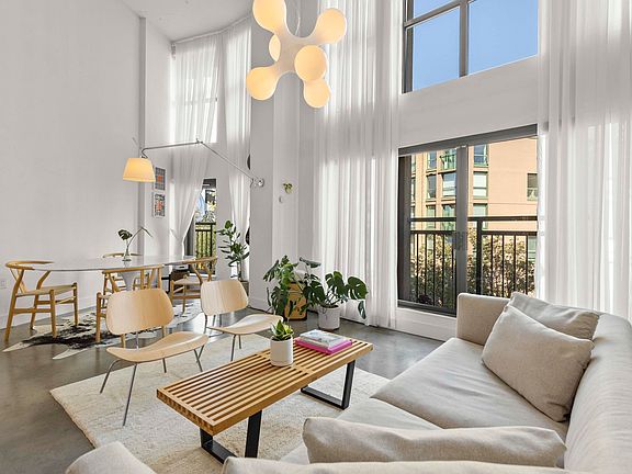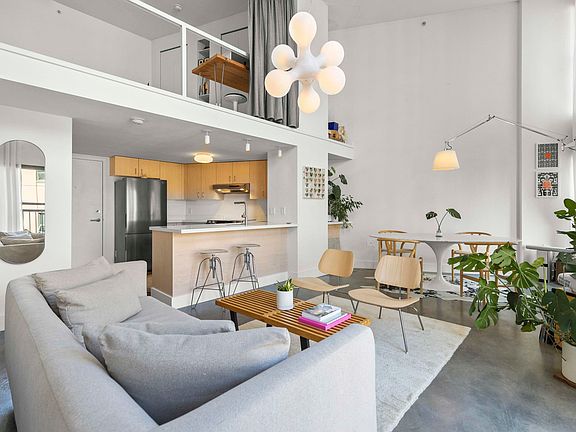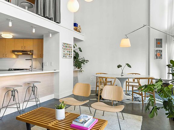 Step into a renovated, designer two-level Gastown loft. Soaring 16' ceilings and long, airy curtains illuminate the space, creating a bright, welcoming atmosphere. The main level offers an expansive living and dining area with newly finished concrete floors, perfect for entertaining or adapting into a chic work nook with a smaller table. Innovative custom storage slides out under the stairs, maximizing functionality without compromising style. Upstairs, the bedroom provides tranquility and space for a work desk, aligning with modem lifestyle needs. Quality appliances and Italian lighting throughout. Situated in a vibrant neighbourhood undergoing exciting enhancements that will lend to a stellar urban living experience and make for a wise investment. 1 parking + visitor parking. Open Houses: Oct 5th: 11:45 AM - 1:15 PM and Oct 6th: 2-4 PM