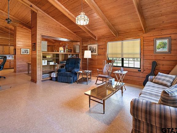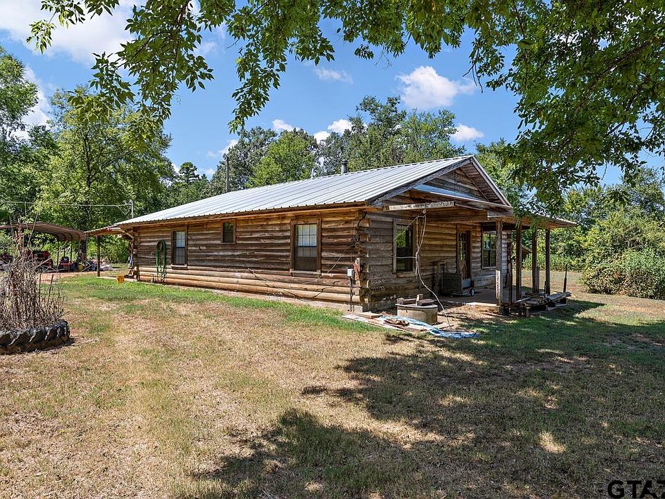 This is a beautiful 2dm 2bth- quaint log cabin! This house has so much charm! Matured trees on the outside to help cover the house with shade and a covered porch with tons of potential to make it your own! Take a walk inside to high ceilings and wood finishings throughout the house! Beautiful exposed beams, beautiful wooden ceiling, beautiful wooden walls, with beautiful wooden built ins! You are walking into the coziest setting a cabin can give! Laminate floors throughout to give a great flow to the house. Ceiling fans, a wood burning stove, a laundry room, and great windows for natural lighting! But wait, there's more!!! This home comes with a SHOP full of cabinets, big doors, a window, and counterspace. Plus there is a detached carport right next to the house! Give us a call to come take a look!