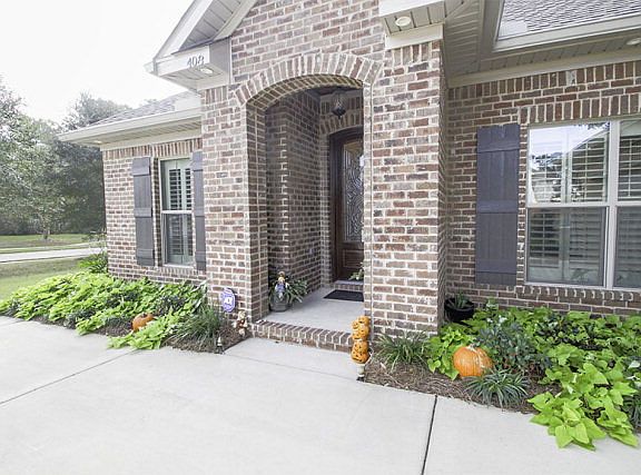 Stunning one year old Truland gold fortified home, with beautiful color pallet and so many upgrades already done for you! This home sits on an over sized premium corner lot with gorgeous landscaping and plenty of outdoor space to enjoy. Extra wide driveway w/additional parking out front for convenience and extended patio in the back for entertaining! Wonderful single level split floor plan with open living and kitchen space. Some of the extras include: Plantation shutters throughout, gutters with screens, extra cabinets with tasteful stone back splash in dining/bar area and breakfast room, upgraded lighting package, alarm system, french doors open to patio w/rod iron railing, extra exterior outlets and faucets, granite around gas fire place, laundry sink plus sold wood shelving for additional storage and walk in tile shower in guest bath. These experienced home owners thought of everything, now ready for you to move right in and enjoy!