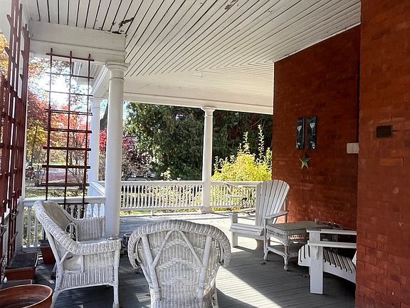Angled ceilingsArched windowsCommon wraparound covered porchOpen floor planUpdated stainless kitchen appliancesExposed brick