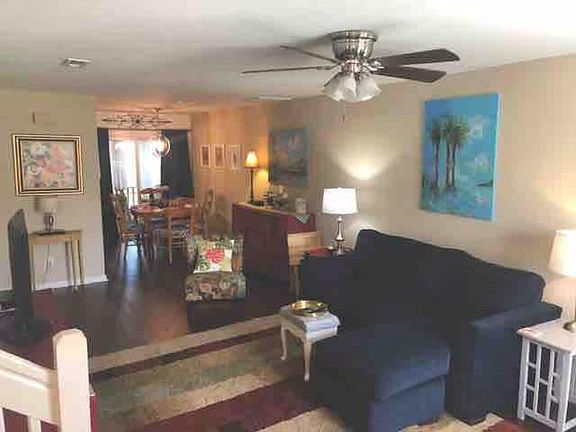 Amazing opportunity to own a fully furnished operational Air bnb or a private home. This well maintained unit offers turn key living with the HOA taking care of everything from landscaping to the water bill. Two generous size bedrooms are upstairs with a full bathroom between the two. The vaulted ceilings make the rooms so bright and open! New tile in bathrooms and laminate flooring throughout downstairs.The nice size kitchen has all matching black appliances and is fully stocked with an ample size eat in kitchen. A half bath and laundry closet, large storage closet complete the downstairs. A screened porch steps down to a nice green space which you may fence in with HOA approval. Lots of Capital improvements this year have helped maintain the value and beauty of the community.