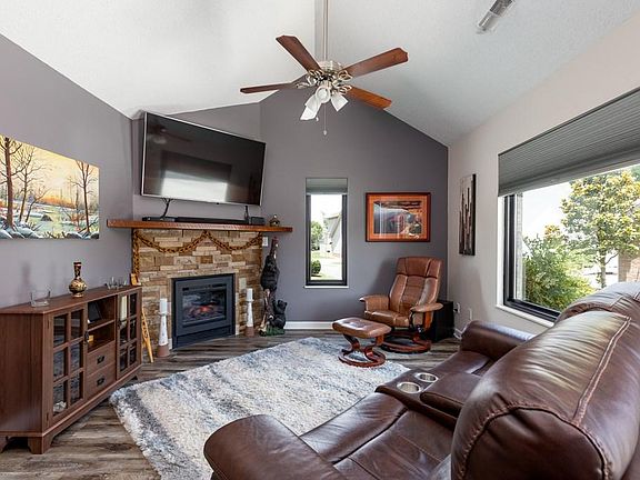 Look no further! This 2-bedroom, 2-bathroom home could be all yours! Whether you're looking for a permanent home, or an overnight rental property; this lovely home in Creekwalk Homes Subdivision is ready for its next owners! Beautifully kept, low maintenance, with multiple updates throughout. New roof installed in 2021, new flooring, new windows installed in 2022 with energy efficient honeycomb blackout blinds. Walk into this extraordinary home and immediately notice the vaulted ceilings and electric fireplace (which offers optional heat and interchangeable flame colors and designs) in the living room. Next, you'll walk into the open kitchen/dining room combo, which offers a breakfast bar and all matching appliances. Just off the dining room, you won't be able to miss the absolutely lovely, enclosed back porch area! The enclosed back porch is enjoyed year-round and offers an elegantly designed gas fireplace and Coolaroo Sun Shade Fabric with 70% privacy screening on all the porch windows. Both the master bedroom and second bedroom are very spacious, with the master bedroom offering a walk-in closet and large bathroom. (Sauna is negotiable).