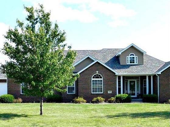 Custom built 4 bedroom, 3.5 bath home with 5 car garages at the edge of town. Kitchen has solid cherry wood cabinets, corian countertops and double convection oven. Fully finished walk out basement has shop.garage area off of it and nice patio area. Large deck off kitchen area has an awesome country view