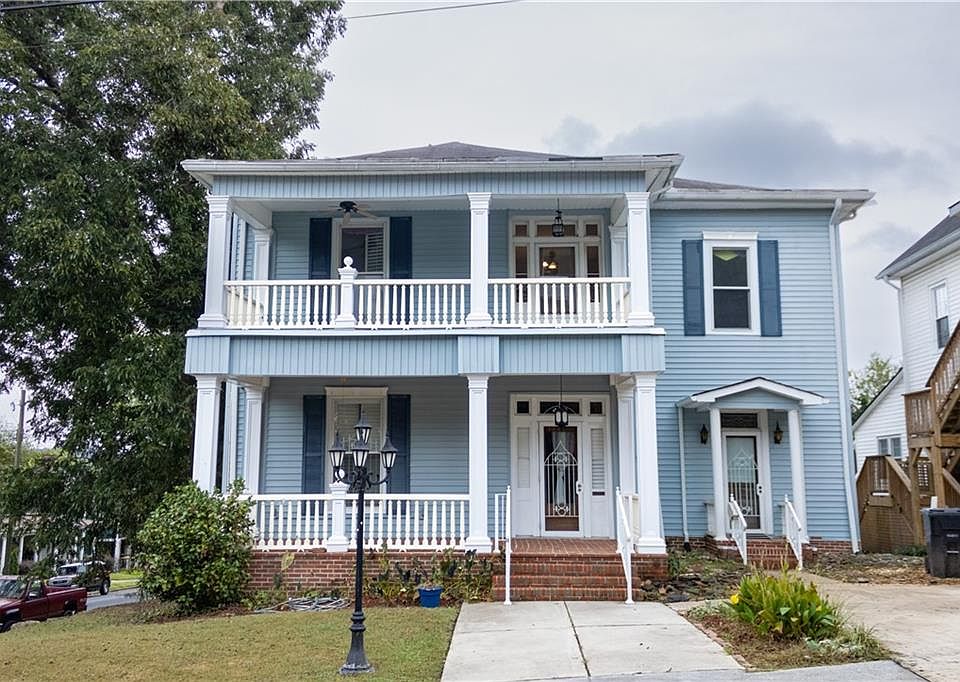 Don't miss the opportunity to own a clean, spacious & beautiful home in the the largest Victorian Era District in the state of Georgia: the Between the Rivers neighborhood in Historic Downtown Rome. This 1920's, two story home sits between the Etowah and Oostanaula rivers on a corner lot with views of the Historic Clock Tower from the front porch and balcony. Making a statement, the tall pocket doors between the parlor and formal dining room on the main floor draw you into the home's estate feel. Adding to the antique charm, each spacious room has its own unique fireplace, tall antique doors in most rooms, and an entry staircase that speaks of rich heritage. Throughout the home you'll find plantation shutters, hardwood floors, zoned heating and air system installed 2014 with four units, a tankless water heater, washer and dryer connections on both floors. The kitchen boasts pull out shelves, a filler pull out between the cabinets and a copper apron sink with a new disposal installed. To aid with the layout of the home, upon entering the home, the parlor and formal dining room lead to the remodeled kitchen that is accessible by both the dining room and entry hall. Just behind the stunning entry staircase, and also on the main floor, the family room has exterior access and leads to a master bedroom with a full bathroom. Tucked behind the kitchen and with access to the full bathroom, is a perfect corner office. At the top of the staircase, three bedrooms flank a full bathroom with laundry closet. One of the three bedrooms is a spacious master suite with a large walk in closet and a bathroom with a large separate shower and soaking tub. Across the hall, a second bedroom also has its own full bathroom. Completing the charm is a beautiful antique door welcoming you to enjoy an evening on the balcony overlooking the quaint downtown life.