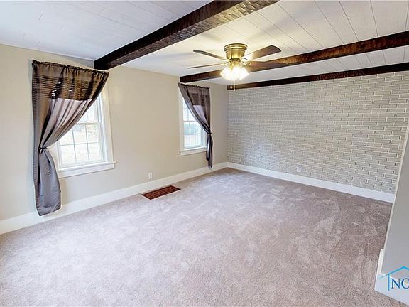 SPLENDID SETTING overlooking the ravine and creek, just under 1 acre lot! Freshly painted and new carpeting in Living Room, Formal Dining area and all bedrooms. Living room has feature brick wall. Formal dining room has tile plank ceiling with wooden beam accents. Large kitchen with eat-in nook & laminate flooring. Full bathroom w/jetted tub/shower combo & single vanity. Bonus heated family room with sliding doors on all sides plus woodburner & supplemental wall heater. Side entrance door has mud room w/cabinets & extra counter space plus closet. Detached 2+ car garage and paved wide driveway!
