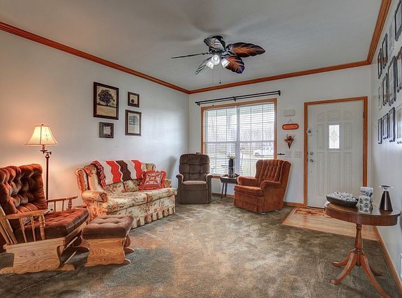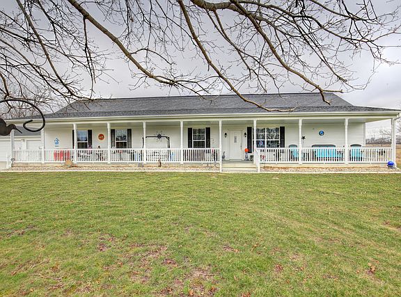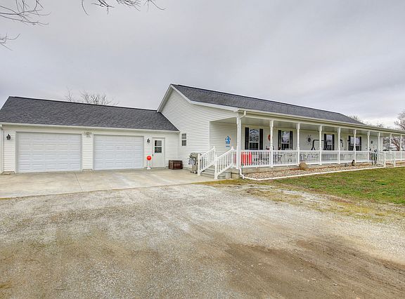Quiet and peaceful - Wonderful Ranch home w/ Front Porch on 3+acres. Attached heated garage and 2 additional garages (1 heated). Nice interior finishes w/ a wonderful open floor plan, Crown molding throughout the house & wood laminate flooring. The large Kitchen is filled with beautiful cabinets, a center island breakfast bar, stainless appliances & walk-in pantry & comfy Family Room open from Kitchen. The Dining Room opens onto a large patio overlooking a wooded scene. Wonderful Master Bedrm suite w/ 2 walk-in closets, additional bedrooms have attached baths & Laundry Rm.