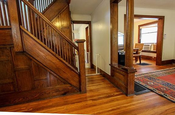 Fall Creek 3 BR, 1 Bath Craftsman Bungalow. Handcrafted woodwork, refinished hardwood floors, lots of light. Open layout. It's bigger than it looks: 3 season porch, sweet 2nd floor sleeping porch, 3rd floor BONUS room! Low maintenance yard, off-street parking. This is the downtown home you've been hoping to find with possibilities. Polish this diamond in the rough and it will be a very very very fine house!
