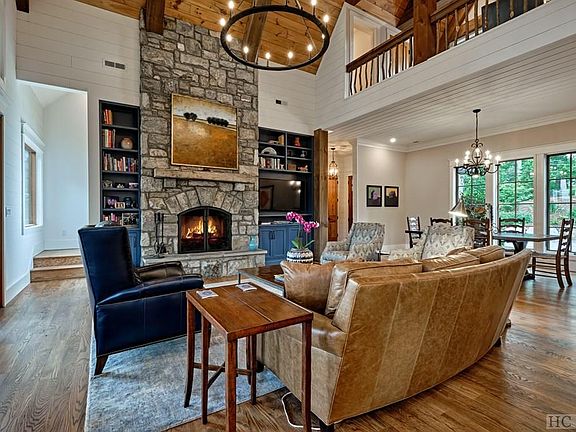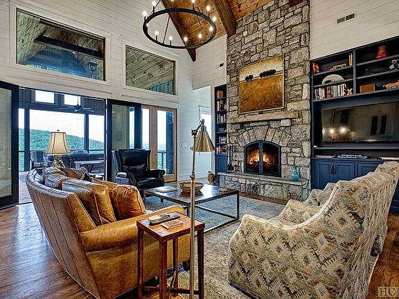 Desirable location just a few minutes from Cashiers, inside the gated community of Cedar Hill, stunning views including beautiful sunsets, and newly built in 2020: your beautiful mountain getaway is here! The main level features the desirable open living concept with vaulted ceilings throughout the great room and the oversized kitchen island inviting all to gather around. The Great Room's stone and wood burning fireplace creates the perfect mountain ambiance, and effortlessly flow onto the screened Carolina porch with a second fireplace and additional decks for plenty of room to take in the gorgeous mountain views. Living accommodations include: two primary suites on the main level and one guest en-suite, two more bedrooms and a second bath on the lower level. Also on the lower level, a large family room with its own gas fire place, provides plenty of overflow room within the home. The upstairs loft features a cozy office library and a full bath and the home's elevator can help take you to all three floors. With beautiful mountain views from not only the main living areas but also from every bedroom, do not wait to schedule a tour of this gorgeous mountain getaway!