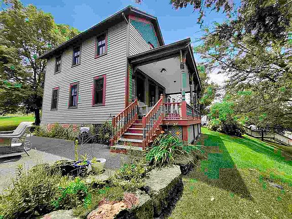Welcome to the Banwarth House, a beautifully restored 3 bed/2.5 bath Victorian dating back well into the 1800's, sited on .22 acres in the heart of Elizabeth with incredible curb appeal, ornate interior finishes, manicured grounds and detached two car garage with heated finished room above. Attention to detail is evident as you enter the main level featuring stunning period wood floors, amazing woodwork, large foyer with focal point staircase, double parlor setup with living room that feeds to spacious family room/sitting room, light and bright formal dining room, powder room with laundry hookup, and huge kitchen with ample workspace, gorgeous bright white cabinetry and plenty of room for eat-in table and guests. Retreat to the upper level to find a generous master bedroom with walk-in closet/storage and access to master bath with double vanity and tile flooring, two cozy guest bedrooms, and an additional nicely appointed full bath with tub/shower combo. Partial basement is clean and open, and offers more usable space and a walk-up exit. Detached two car garage has plenty of space for vehicles and storage, and also houses heated (electric baseboard) finished room above great for office/hobby/play/etc. Relax and enjoy the outside from either that expansive covered porch or rear concrete patio. Asphalt drive and concrete garage apron. Most recently the home has operated as the Banwarth House & Museum, and was open to the public for tours. Kitchen is irregular shape, additional kitchen dimension is 9'7 X 7'3 for cooking area. Sold "As Is".