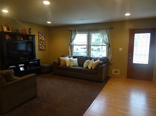 3 BR, 1 1/2 Bath Duplex w/updated kitchen (2013), oversized attached 4 car garage w/additional 50 Amp electric Panel, lg fenced yard with patio,full basement, central air, new windows (most from 2014) on quiet dead end street-Freshly painted, New Roof(2014), New Sump Pump & Basement Waterproofed (2015)
