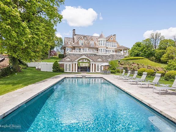 Live your dream at this rare property with 1100 feet of direct waterfront on the Long Island Sound in Rye, NY. Wake up to a stunning sunrise and morning swim in your pool overlooking the Sound. Play tennis on your court nestled by the sea to top off a perfect morning. Dock your boat on your own private peninsula. This extraordinary home is perfect for entertaining, 12- and 14-foot ceilings throughout, unparalleled attention to detail. Designed by architects Shope, Reno and Wharton, offering waterfront views from almost every room. Enter into the living room featuring a fireplace with a 300-year old imported marble fireplace surround. The formal dining room includes a 22-foot long glass-wall looking into the temperature controlled wine room. Double-height cherry wood paneling in family room and a wall of windows is breathtaking. Imported Honduran mahogany lines the study. The lower level includes indoor pool, fitness room, additional family room and more. This masterpiece awaits!