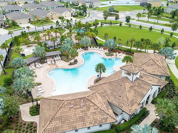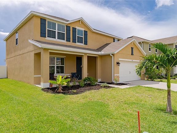 PRICED BELOW MARKET VALUE!! MOTIVATED SELLER!! Come live your dream life in this beautiful resort like community! Nestled on one of the coveted waterfront lots, this virtually brand new absolutely beautiful 5 bedroom 3 bath home is just what you are a looking for! There is room for everyone with a large bonus room loft on the 2nd floor along with the 4 additional bedrooms & a full bath with dual sinks, an open floor plan on the 1st floor with a dining area, living room & another separate front sitting room or office/den/study area, an expansive master suite & an additional half bath. High ceilings add an additional open spacious feel. The owners have upgraded the flooring to beautiful porcelain tile wood floor planking throughout most of the main floor. Boasting an expansive fenced back yard overlooking the pond with an elegant wrought iron fence along the back of the property. And did you see that pool & community area? An amazing community pool, soccer field, play ground with "4 Square" & mini rock climbing, fitness center, clubhouse, covered pavilion with grills & the community itself is very pet friendly...all for an extremely low HOA & no CDD! What more could you ask for? This home is priced to sell & will not last long!!